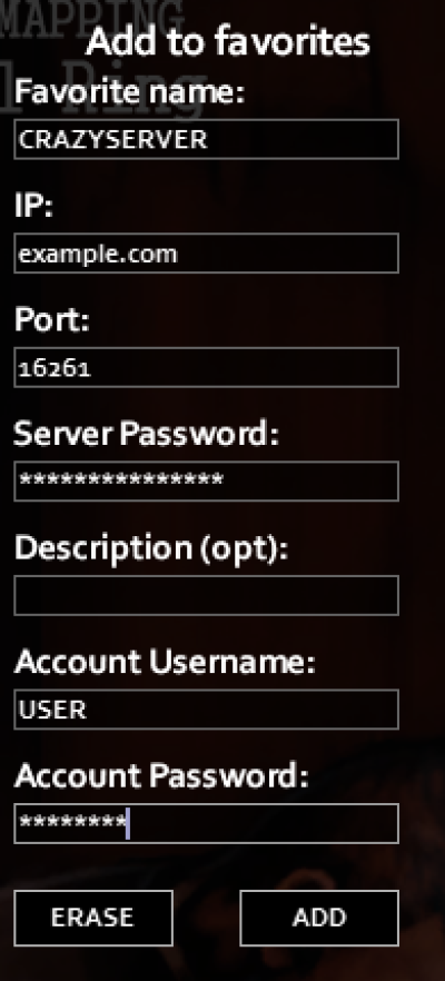 • Under Add to favorites input server information.