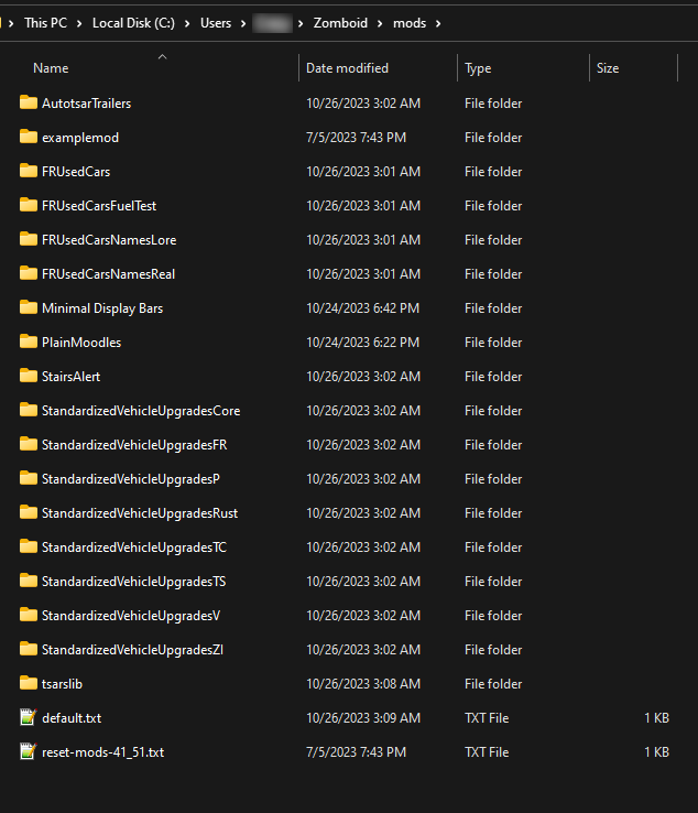 • Windows = C:\Users\$USER\Zomboid\mods